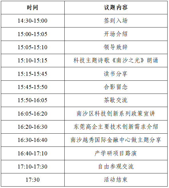 为深入实施创新驱动发展战略,以书香滋养创新土壤,以科技创新促发展,推动创新主体跨领域思维碰撞、资源共享与合作探索,在阅读中升华心灵,在科技中感知未来,营造南沙良好科创氛围。现拟于4月23日举办南沙新区科技系统党委读书分享会暨产学研合作对接会活动。